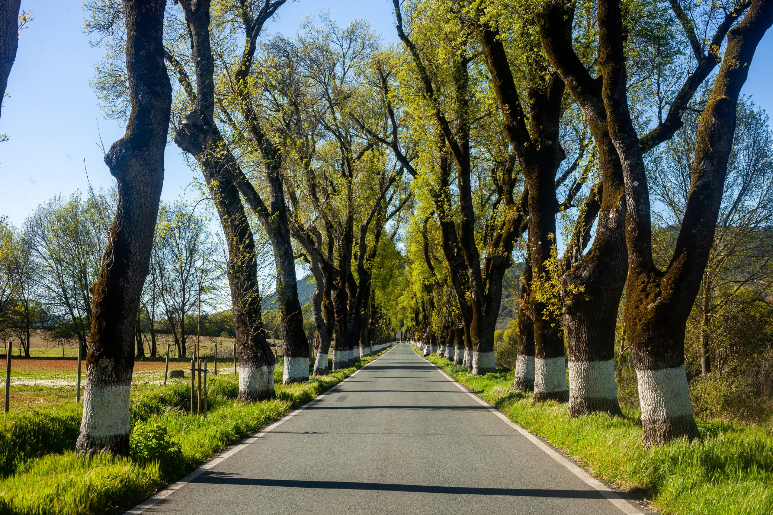 Ao longo de cerca de um quilómetro da EN246-1, mais de duas centenas de freixos centenários alinham-se de ambos os lados da estrada, criando um corredor de sombra, luz e vida que parece suspenso no tempo.