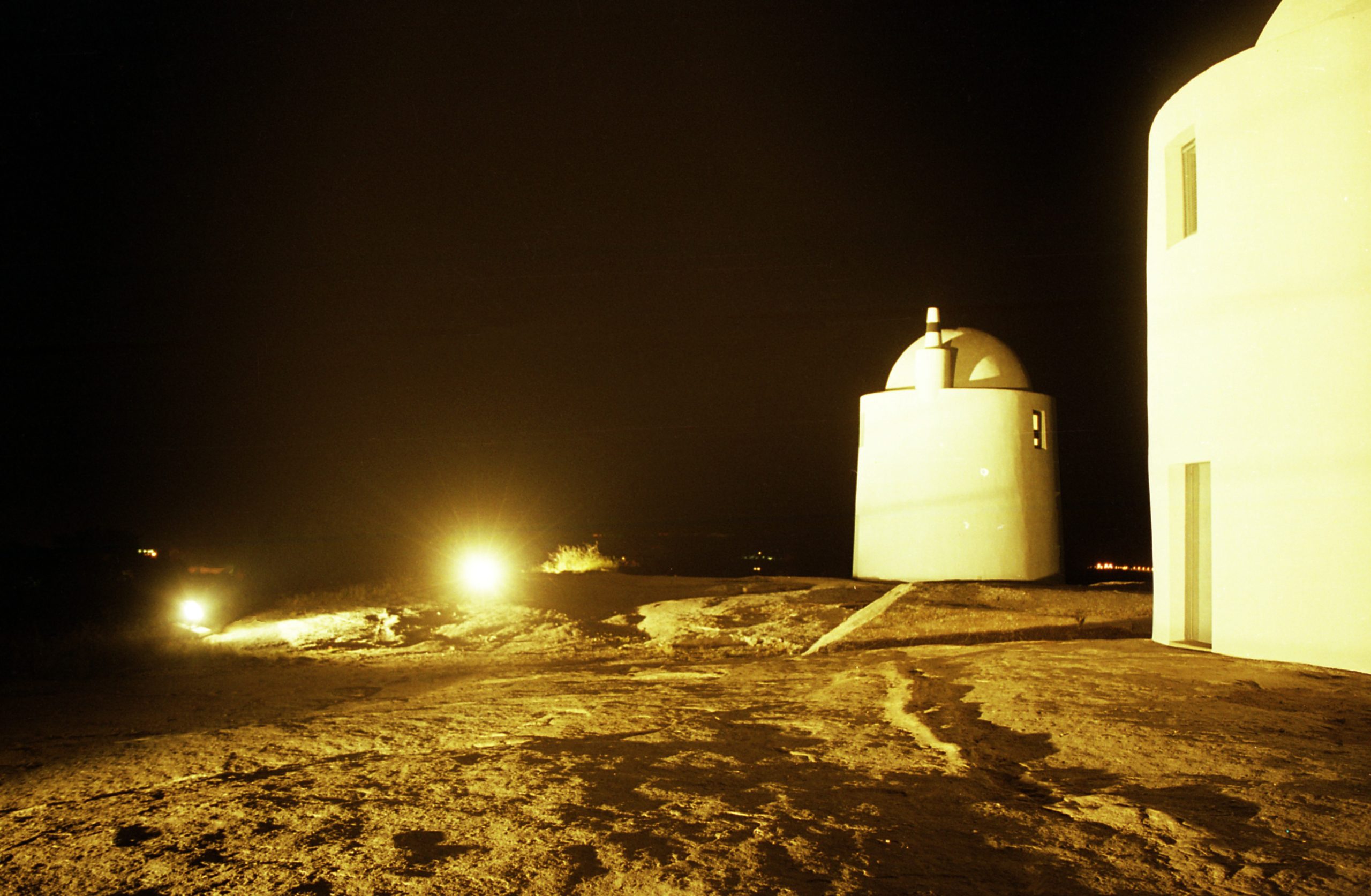 Na altura, os moinhos tinham sido restaurados há pouco tempo. De noite, iluminados contra o céu escuro do Alentejo, pareciam ainda mais impressionantes. Fotografei-os em silêncio, com o vento a passar devagar entre as pedras e a sensação de estar sozinho naquele ponto alto sobre a cidade.